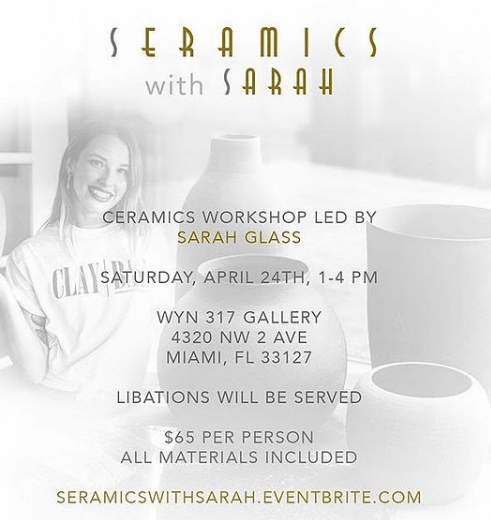 Join Seramics with Sarah – Saturday 4/24/21 from 1 – 4 PM). Experience one of WYN 317’s hands-on, socially distant crafting workshops. Come with friends, fam, or solo — this ceramics workshop makes a great place to make new friends safely outdoors. Each participant will have the opportunity to make up to two items (pots, mugs, bowls, plates) using stoneware clay. Here’s the link: https://www.eventbrite.com/e/seramics-with-sarah-at-wyn-317-gallery-tickets-148639048395