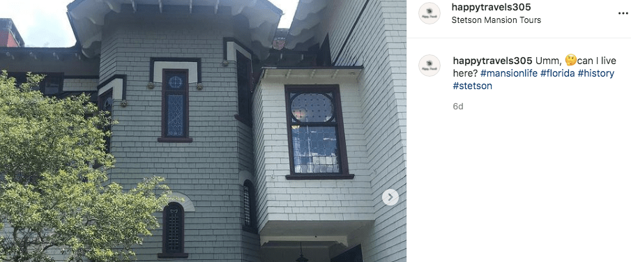 Stetson Mansion is a gorgeous National Register of Historic Places-listed estate in DeLand, originally constructed circa 1886 by John and Elizabeth Stetson. As Florida’s first luxury estate, the home once entertained the likes of King Edward VII, Thomas Edison, President Grover Cleveland, and members of the prestigious Vanderbilt and Carnegie families. Today, the three-story Victorian-style home is owned and operated as a living history museum and can be toured as part of 60- or 90-minute guided tours. All rooms within the home are showcased on tours, featuring exquisite design elements such as Tiffany stained-glass windows, 3D-patterned parquet floors, a Dali lithograph, and an original Edison light fixture. During the winter holidays, the home is lavishly decorated as part of an annual public Christmas celebration.