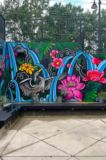 Located across from the popular Proof Brewing, Co., customers enjoy an adult spin on the classic Capri Sun juice pouch at Happy Motoring – a renovated gas station. This go-to cocktail spot offers an equally fun style of frozen drinks and atmosphere, including both indoor and outdoor seating, a beautiful mural and delectable dishes from Tally Mac Shack.