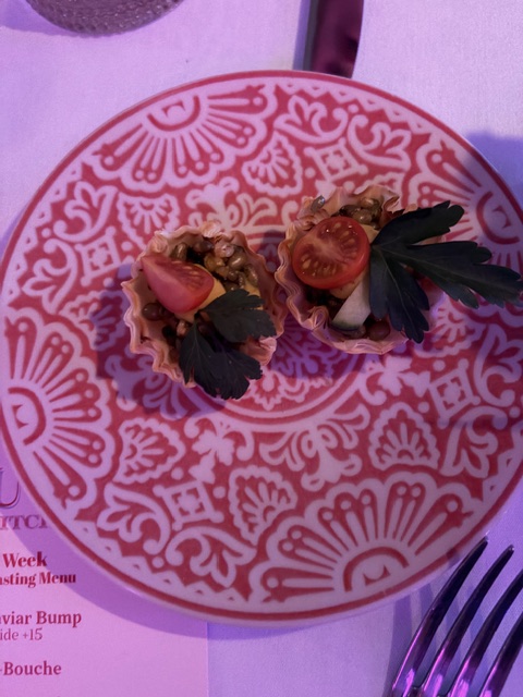 BABU isn’t your typical Indian restaurant — it’s a vibe. Think tropical Miami meets modern Mumbai. Fairy lights twinkle above, Bollywood beats hum softly in the background, and the scent of toasted spices and coconut milk fills the air. The pop-up setting feels intimate yet electric, alive with laughter and clinking glasses.