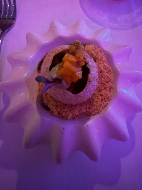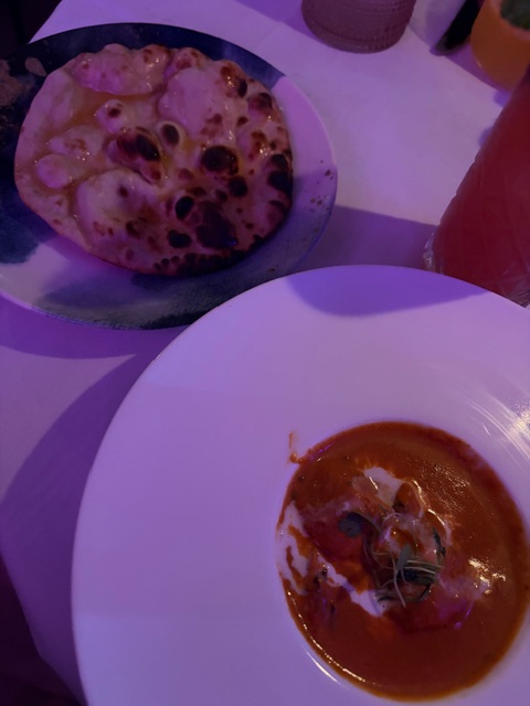 BABU isn’t your typical Indian restaurant — it’s a vibe. Think tropical Miami meets modern Mumbai. Fairy lights twinkle above, Bollywood beats hum softly in the background, and the scent of toasted spices and coconut milk fills the air. The pop-up setting feels intimate yet electric, alive with laughter and clinking glasses.